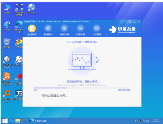 6、电脑进入PE系统之后,耐心等待小鱼软件自动给电脑安装win7系统。