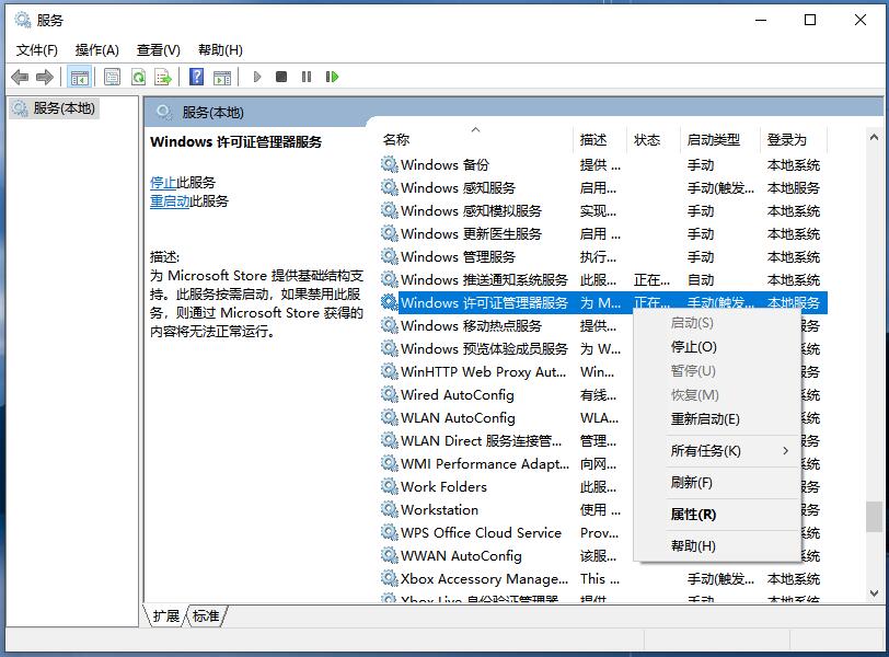 1、打开服务应用,鼠标右键选择windows许可证管理器服务属性;