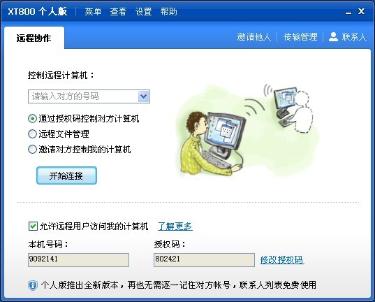 协通XT800远程协助“是一个功能强大,操作简单,可以对远程计算机的访问和管理,远程技术支持,为客户做或建立内部线路的实时协作环境,穿透防火墙的远程协作软件。