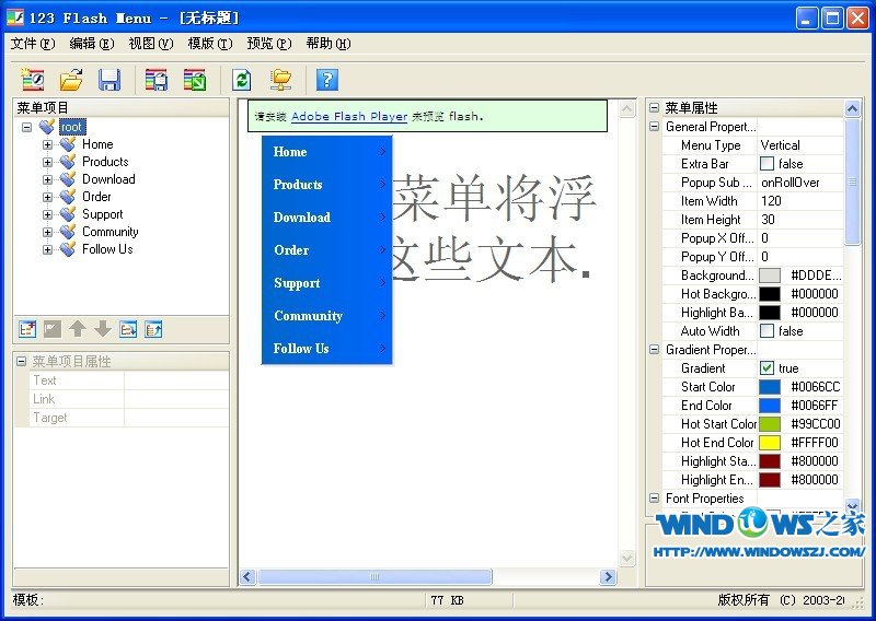 Dreamingsoft 123 Flash Menu v4.5 汉化破解版 软件是windows之家工作人员为大家收集,绝无任何插件、木马、病毒,请放心使用,极个别杀软纯属误报,请安装之前放行!资源均来自互联网,版权争议与本站无关。您必须在下载后24个小时之内,从您的计算机中彻底删除。