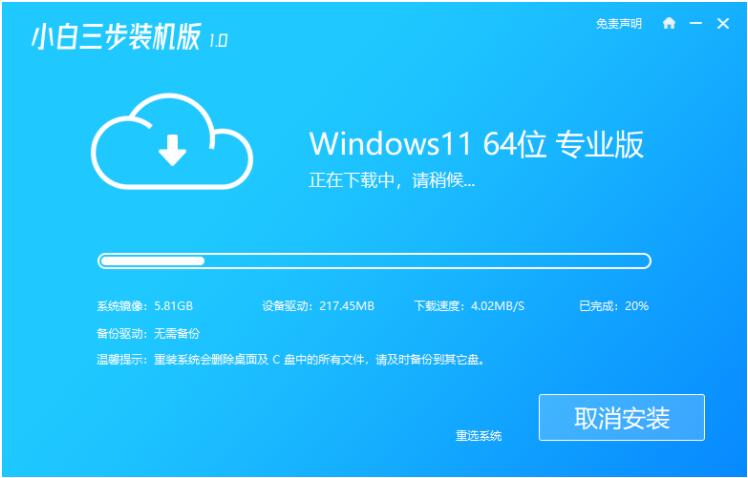 1、下载安装小白三步装机版软件并打开,选择我们需要重装的系统进行下载安装。