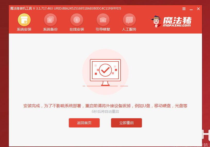 5、在pe系统桌面,魔法猪装机工具会自动开启并安装win11系统,期间无需操作。提示安装完成后,立即重启电脑。