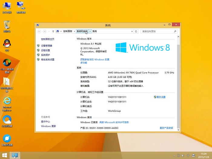 小白系统win8.1 系统已经激活的界面,如果没有激活的,可以打开桌面上的激活文件,里面有win8.1激活的教程
