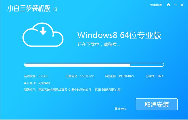 1、下载小白三步装机版软件然后打开选择win8系统。